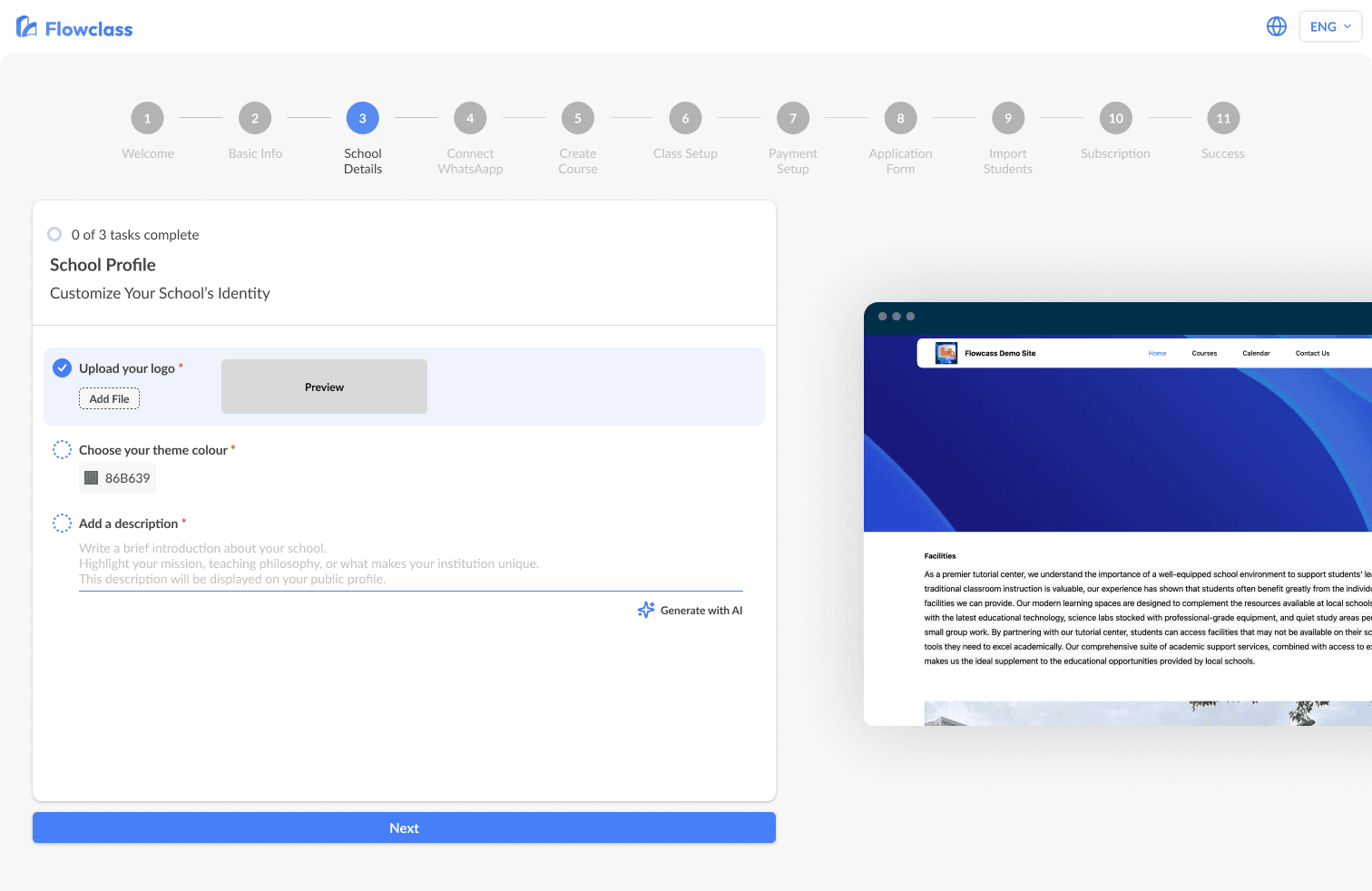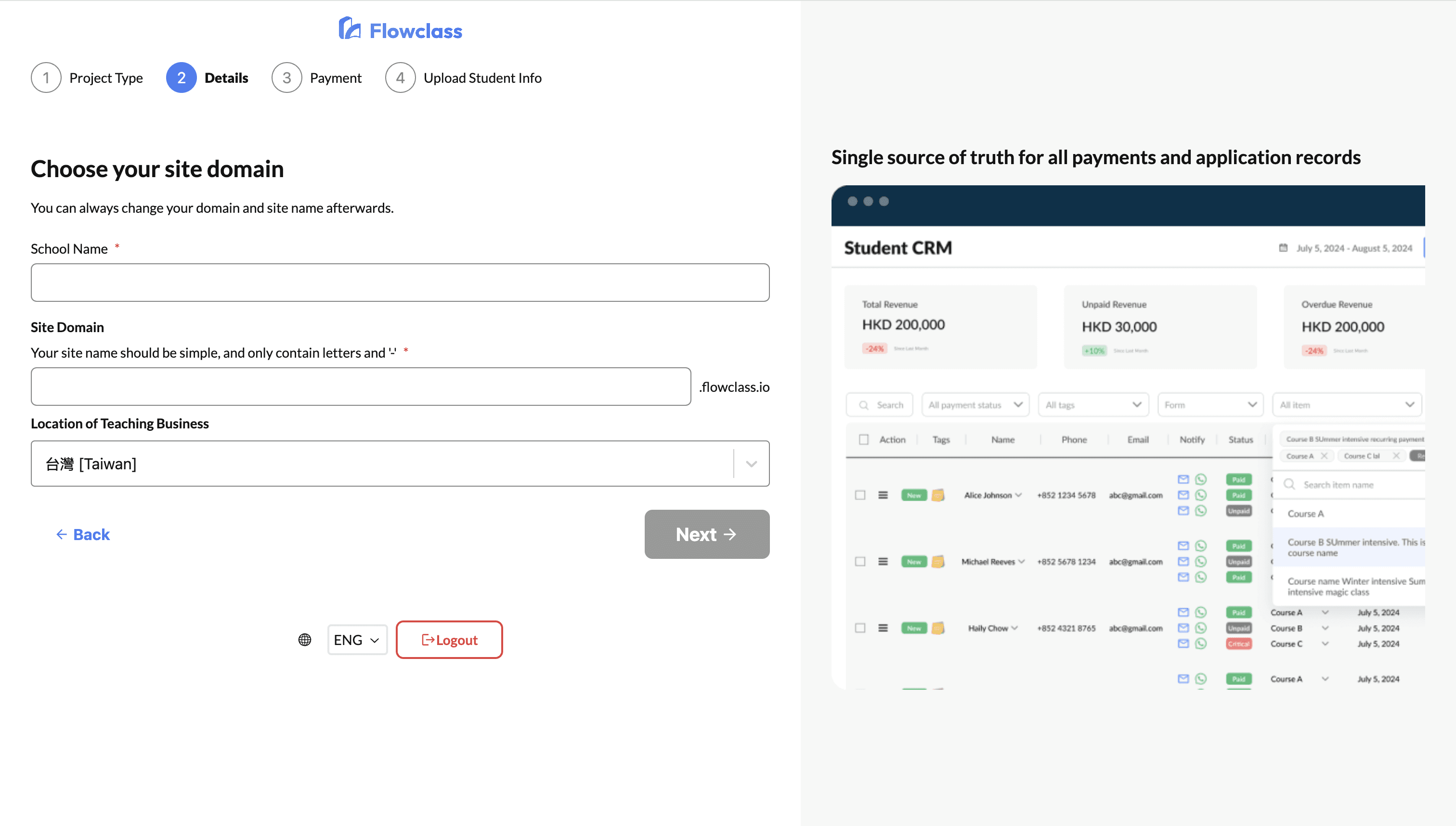 Based on the answers, the system recommends the most suitable class type to the school or to the teacher