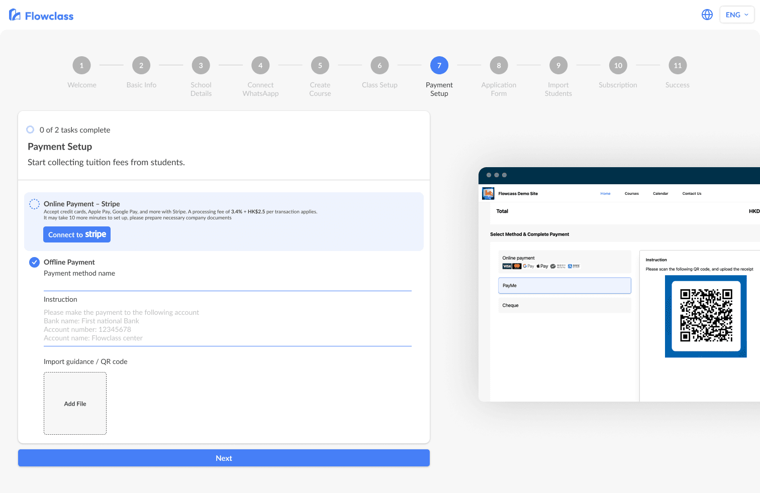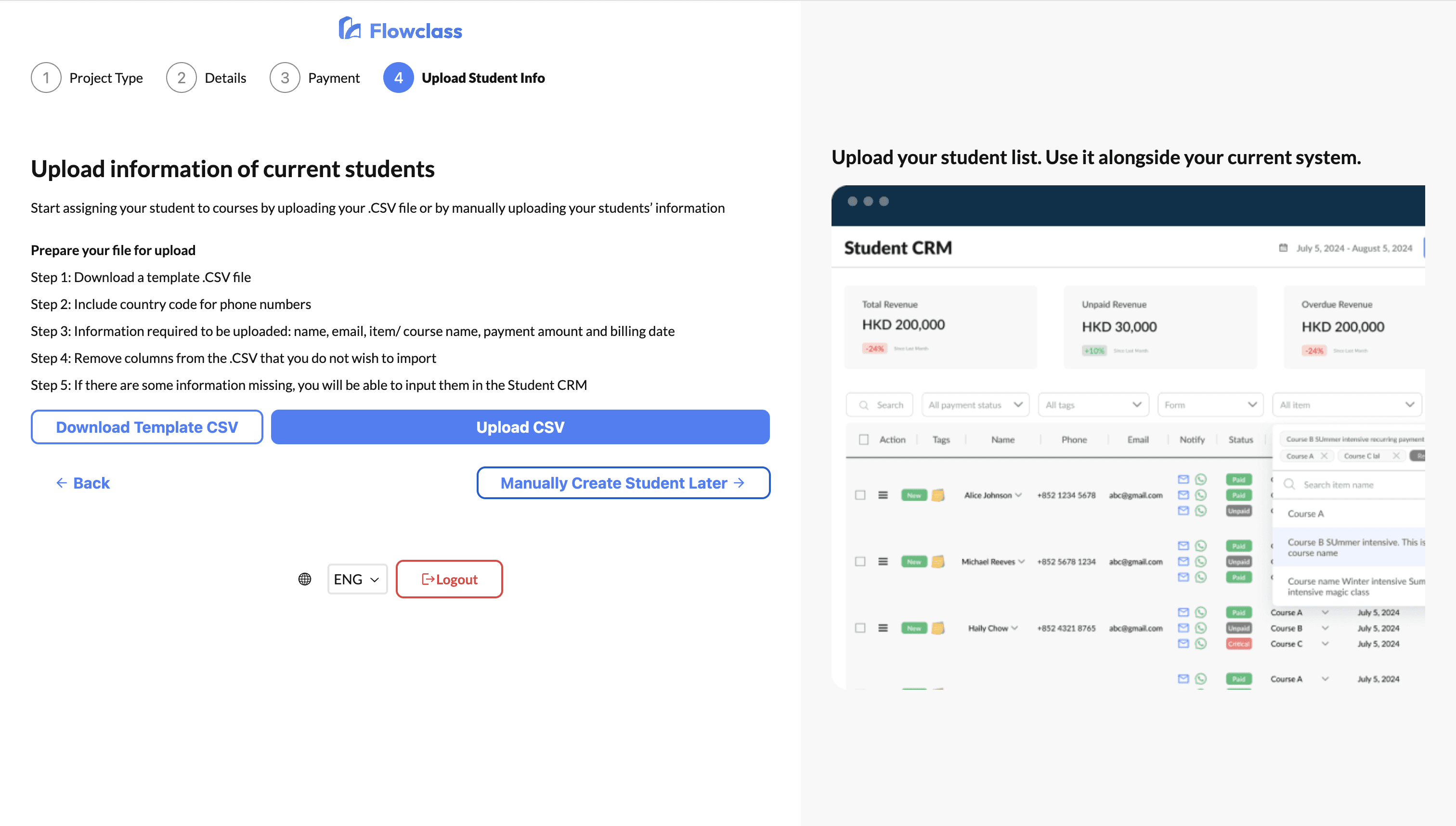 As a fast-moving startup, Flowclass had limited engineering capacity. While I completed the design for the onboarding flow during my internship, implementation was still in progress, and I was unable to test the live version within my time there.Restricted Testing Resources