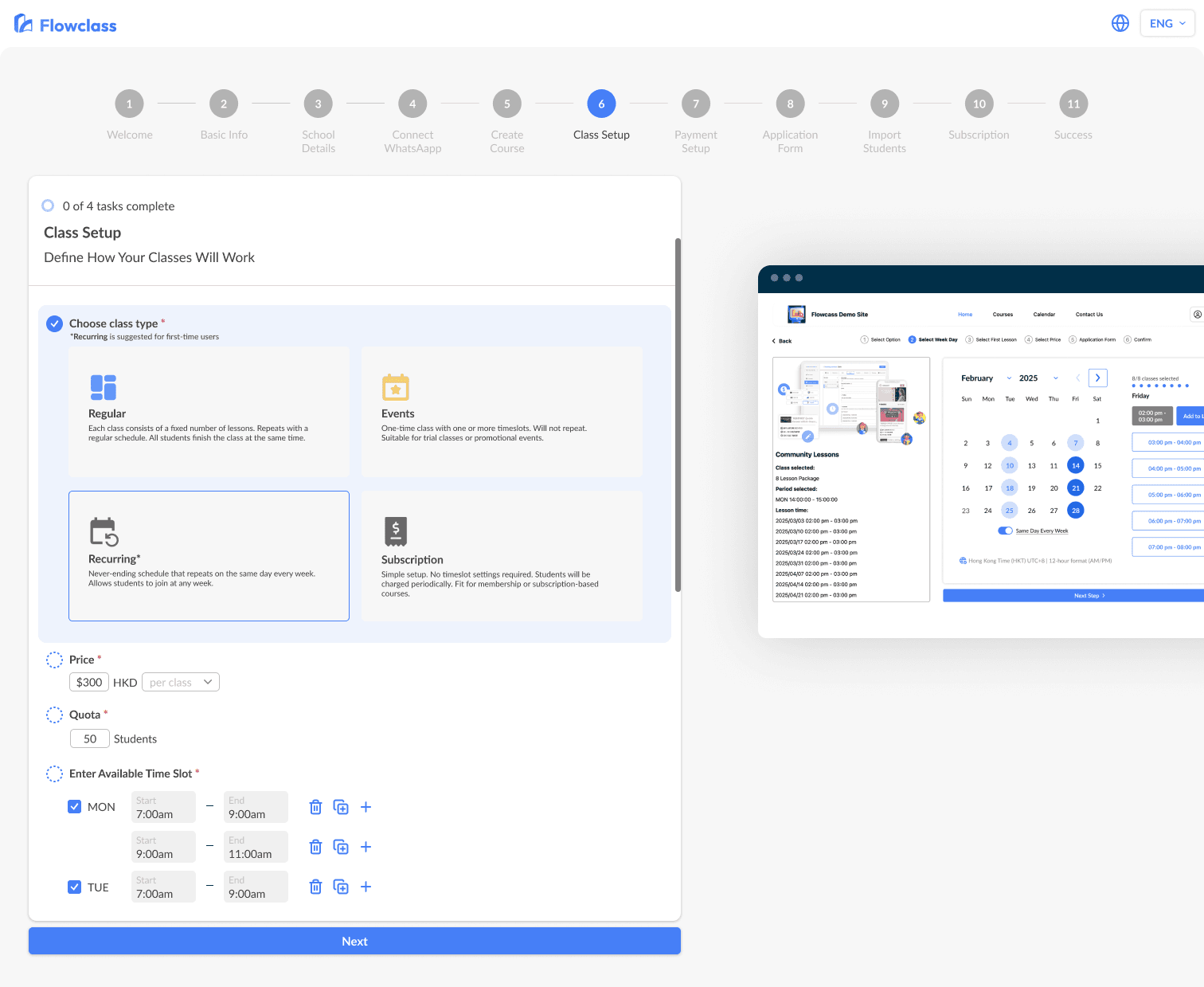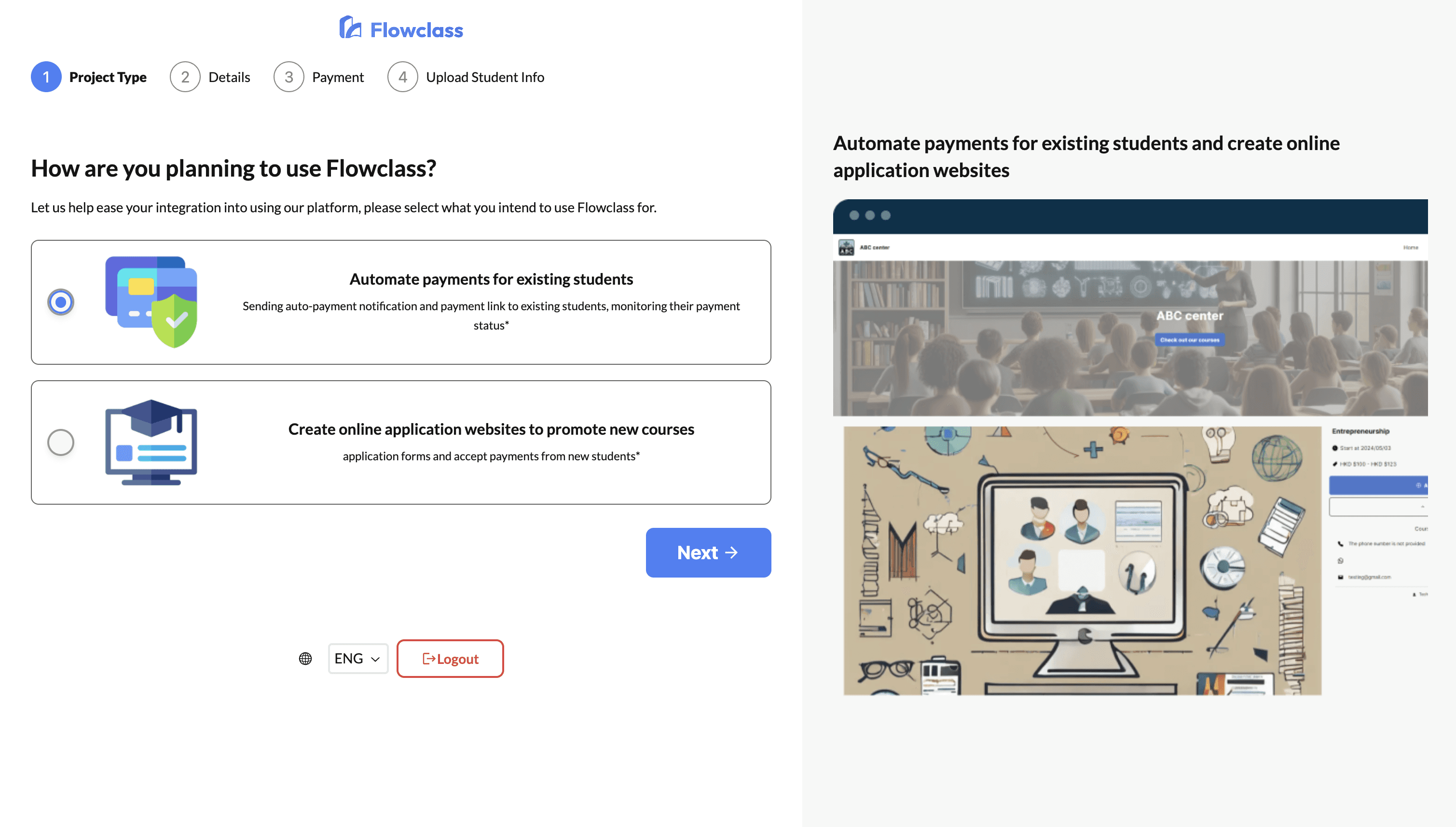 Flowclass offers five different class types, each designed for different teaching formats (e.g. recurring classes, one-time events, regular class, etc.). However, based on user interviews and customer support feedback, many users were confused about which course type to choose during class creation.